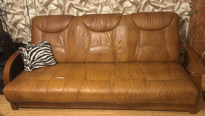 Skórzana, rozkładana kanapa. Sprawna, wygodna. Skóra do renowacji. Konieczny odbiór osobisty z okolic ulicy Urzędniczej.