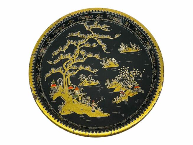 Taca tacka litografowana metalowa Chiny 6 sztuk – PRL • Motyw: Chiny • Kolor dominujący: Czarny, złoty • ...