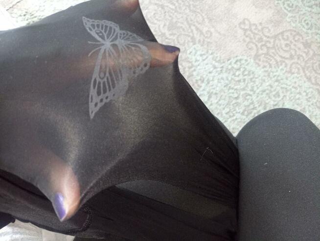 Oryginalne, bardzo kobiece rajstopy olejowe z aplikacją motyli. Odpowiednie dla osób plus size. Rozmiar 2XL. Wysyłka ...
