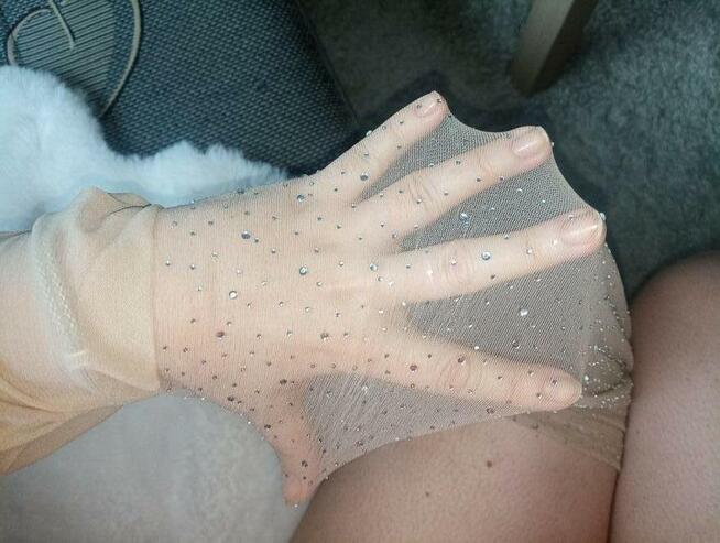 Atrakcyjne rajstopy z mieniącymi się błyszczącymi cyrkoniami idealne do odświętnych stylizacji w naturalnym, cielistym ...
