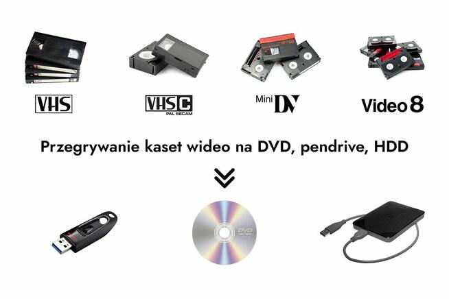 Oferuję profesjonalne przegrywanie kaset VIDEO VHS VHS-C miniDV Video8 Digital8 Kraków do postaci cyfrowej. Kasety ...